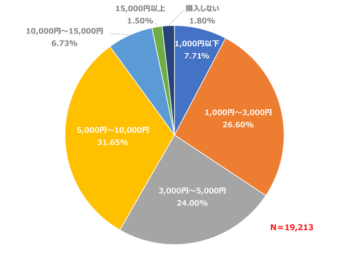 特に「1,000〜3,000円」や「3,000〜5,000円」の価格帯を選ぶ家庭が多いことがわかります。