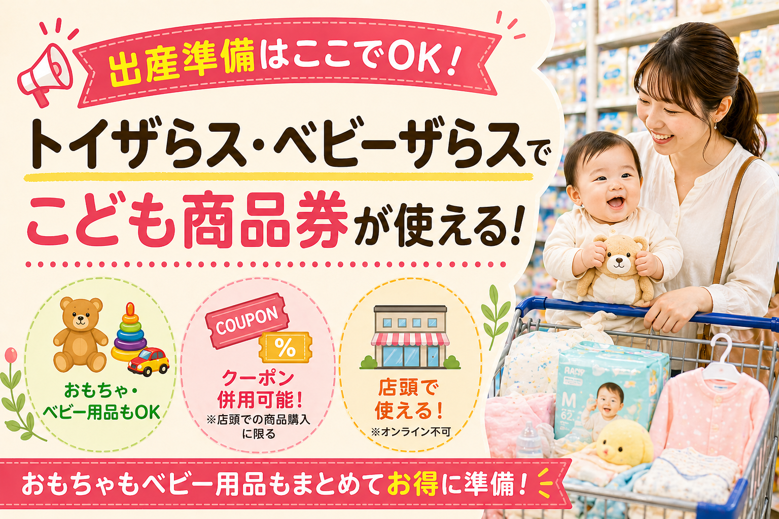 お役立ち情報こども商品券が使えるトイザらス・ベビーザらスでお得に出産準備をはじめよう!2023.7.4 -